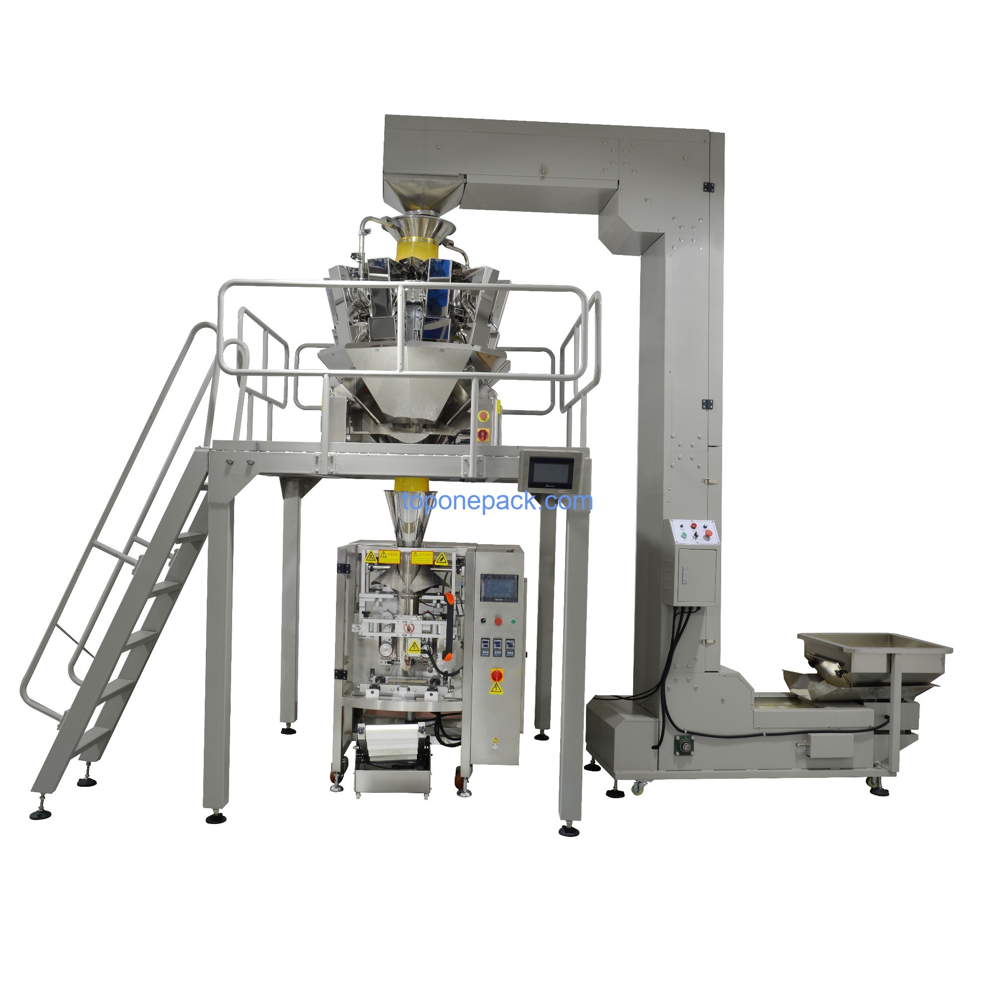 Function | This machine can automatically measure, make bags, fill, seal, cut, print codes. This machine is equipped with multi-heads weighers, It can pack all kinds of grain or granule, such as, pills, tablets, capsule, candies, nuts, peanuts, dry fruits, agricultural products, etc. Or, slice, block, bar products and puffed foods, such as, oil fried foods, potato slices, shrimp slices, crispy rice, and so on. |